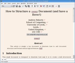This is opposed to the average Word user, who will immediately highlight a given section header and apply formatting to it: maybe a larger font, maybe underline, etc. The point is that this will then have to be applied to every header manually. LaTeX is better as it uses a document style. This defines how different elements within your document should look (like Cascading Style Sheets defining styles in HTML pages). If you fancy a change, you only change the style definitions once, then the presentation of the document will be updated automatically. This also ensures a consistent looking document (you wouldn't believe how many stylistically inconsistent Word docs I've read!)